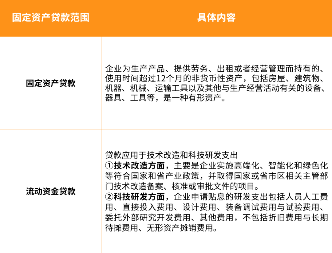 符合贴息要求的贷款应全部用于建设厂房、购置厂房、购买设备、技术改造或科技研发支出。若贷款仅部分用于上述用途,应按实际支出的贷款金额申请贴息。例如: